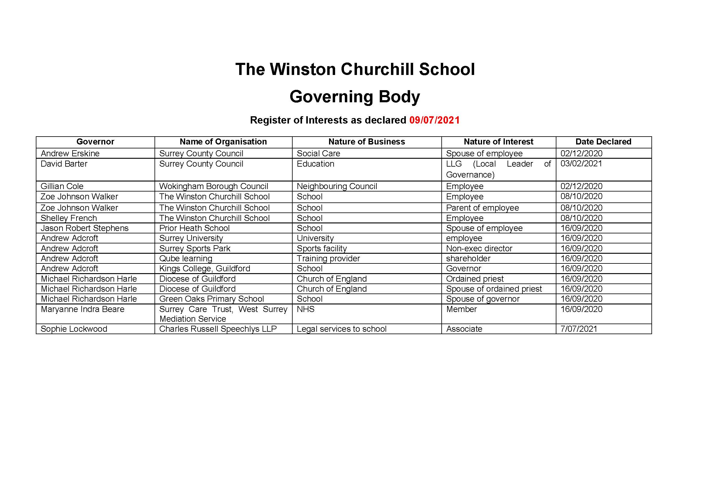 Winston Churchill School Governors