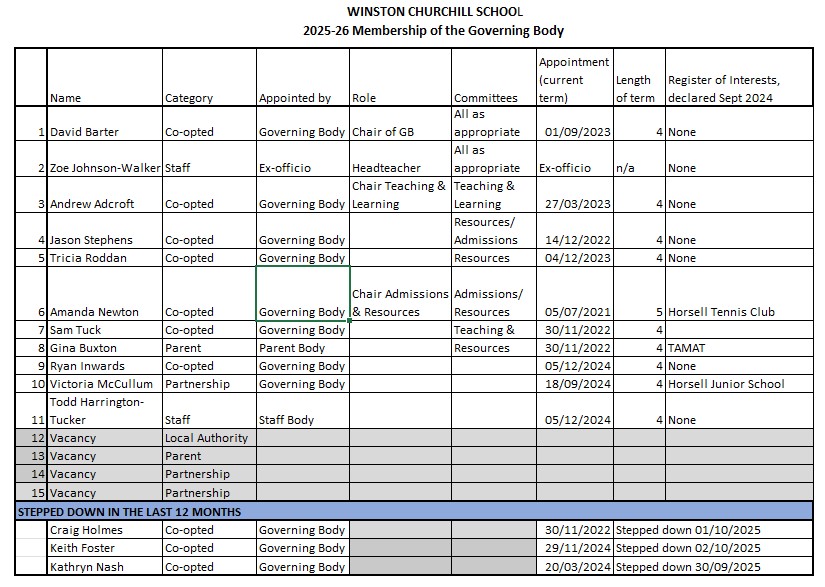 Winston Churchill School Governors Winston Churchill School Governors Membership of the Governing Body Governing Body Register of Interests